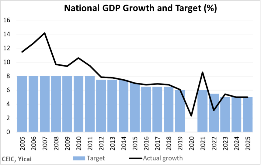 China’s GDP growth targets are meant to be achieved on an annual basis and there has typically been limited tolerance around the target.