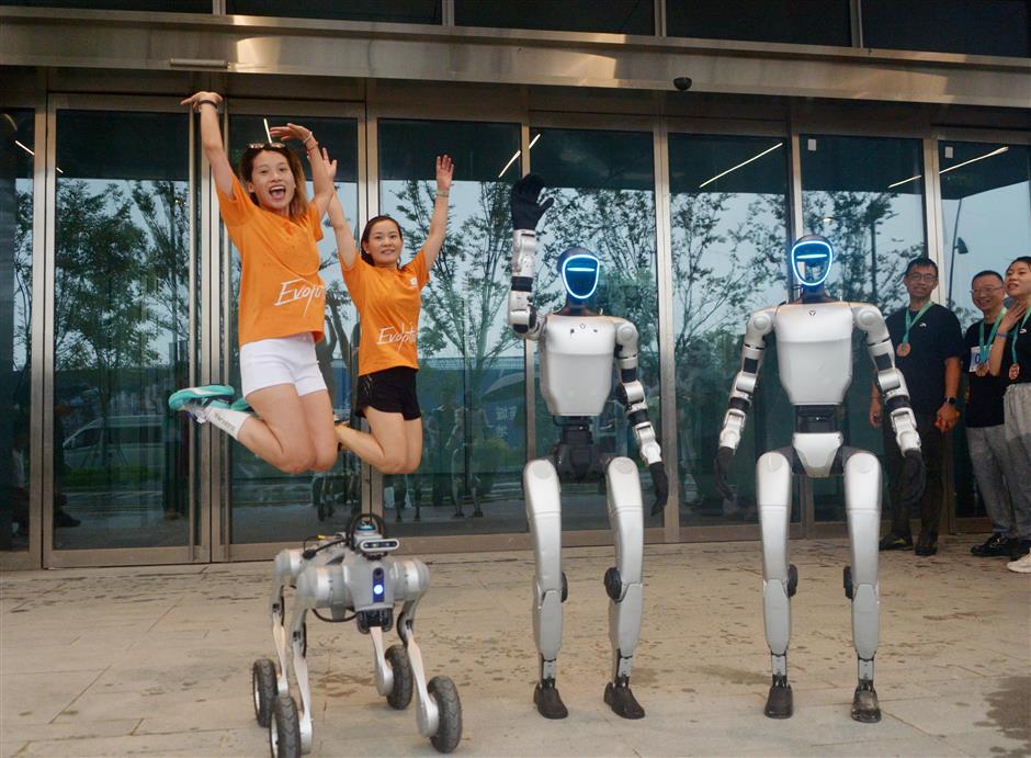 Residents joined robots for a jogging activity at Nanda Smart City, part of the Baoshan exhibitions of the Urban Space Art Season.