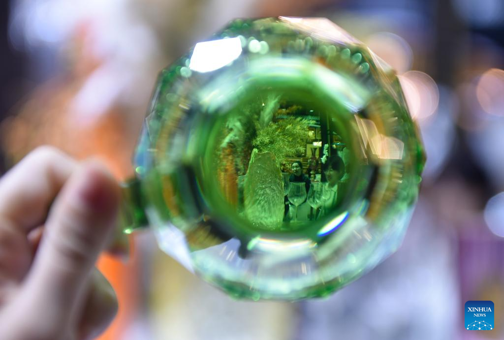 This photo taken on Nov. 5, 2025 shows a crystal glass from the Czech Republic exhibited at the Consumer Goods exhibition area during the eighth China International Import Expo in east China's Shanghai. Featuring the largest exhibition area in its history and a record high number of exhibitors, the eighth China International Import Expo (CIIE), with the theme of "New Era, Shared Future," has attracted 4,108 overseas exhibitors from 155 countries, regions and international organizations -- with the total exhibition area exceeding 430,000 square meters. (Xinhua/Lu Peng)