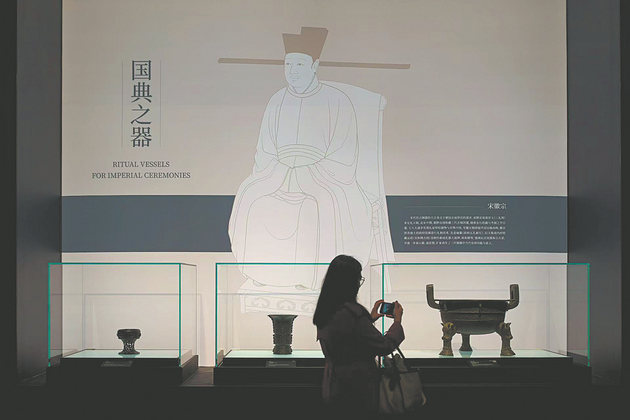 Emperor Huizong of the Song Dynasty is highlighted for reforming the ritual system and revival of ancient Chinese bronzes, at the exhibition, Recasting the Past: The Art of Chinese Bronzes, 1100-1900, at Shanghai Museum East from Nov 12 to March 16. Following the successful exhibition at the Metropolitan Museum of Art (The Met) in New York, Recasting the Past: The Art of Chinese Bronzes, 1100-1900 opened at the Shanghai Museum on Nov 11, showcasing approximately 178 pieces or sets of artifacts, including dozens that have never been displayed to the public.