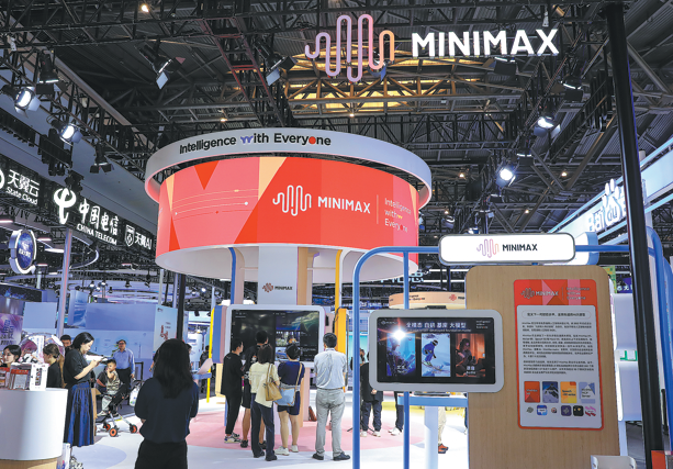 Visitors learn about MiniMax at its exhibition area during 2025 World Artificial Intelligence Conference in Shanghai on July 29.