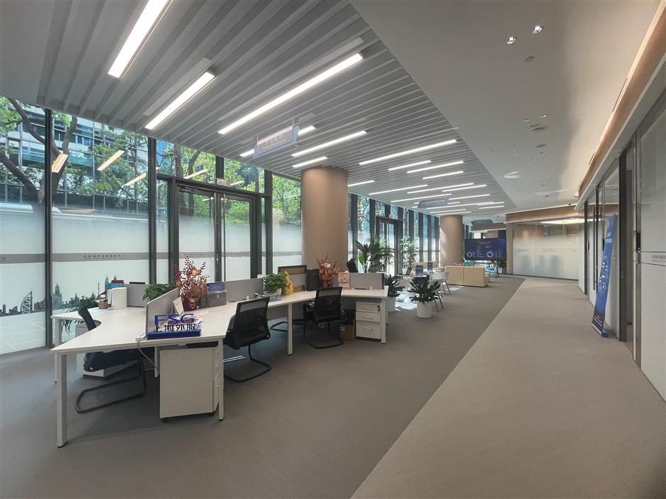 The modern, open-plan workspace inside the Hongqiao Overseas Development Service Center.