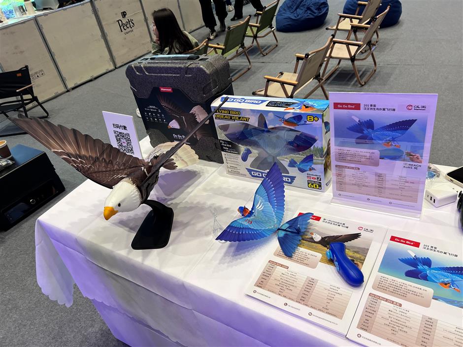 Meanwhile, Shenzhen-listed Hanwang Technology demonstrated a novel flying "machine bird" designed for children, featuring low-altitude flight and the ability to take off and stop quickly.