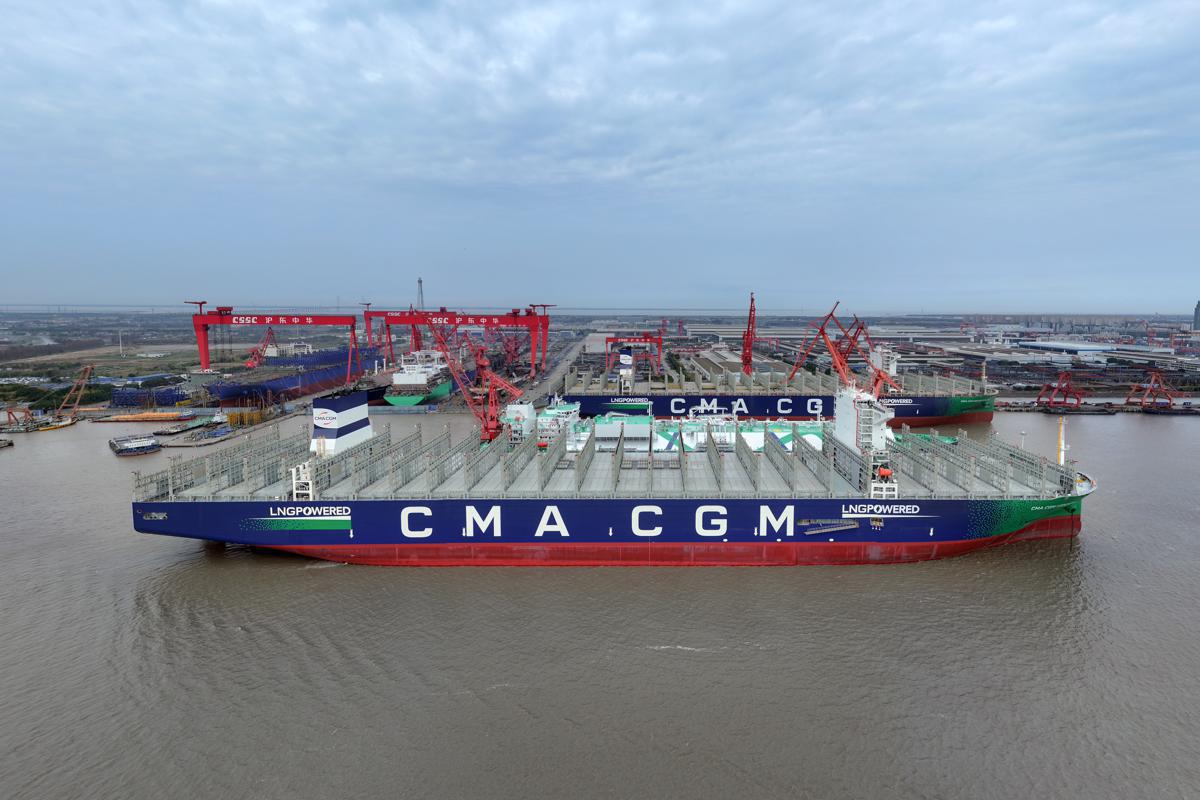 With the delivery of the world's largest dual-fuel powered container ship to French shipping and logistics group CMA CGM Group, Hudong-Zhonghua Shipbuilding (Group) Co Ltd, a unit of the world's largest shipbuilder China State Shipbuilding Corp, has announced that it has achieved the milestone of delivering 100 large-scale container ships.