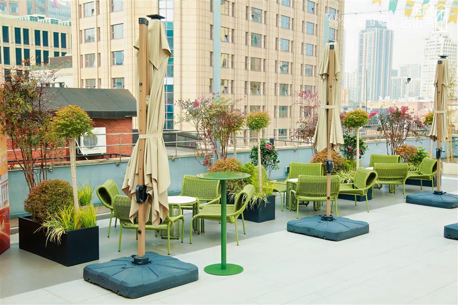 The rooftop terrace of the Bund Fin-Tech Community overlooks the Huangpu River and has opened to fintech firms and internet content creators for events, livestreams and industry gatherings.