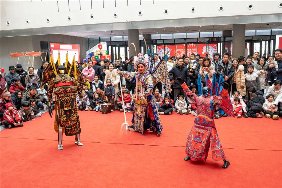 Robots perform Peking Opera in a science museum in Jinhua City, Zhejiang Province, on February 7, 2026.