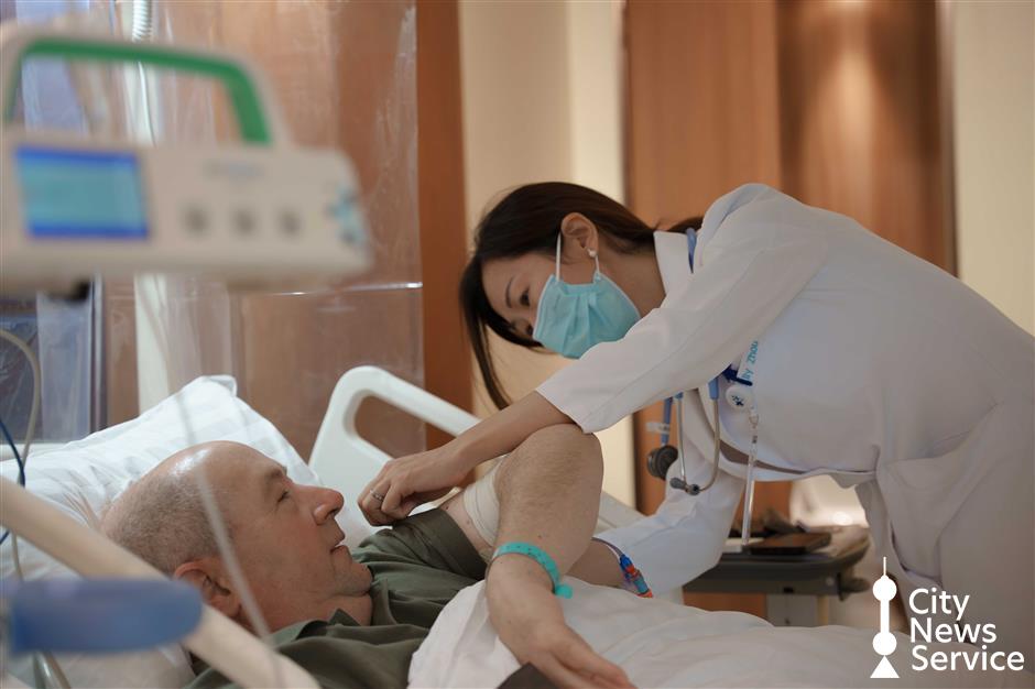 Dr Lily Zhou from Shanghai SinoUnited Hospital checks a patient from New Zealand with lymphoma with CAR-T therapy in Shanghai.