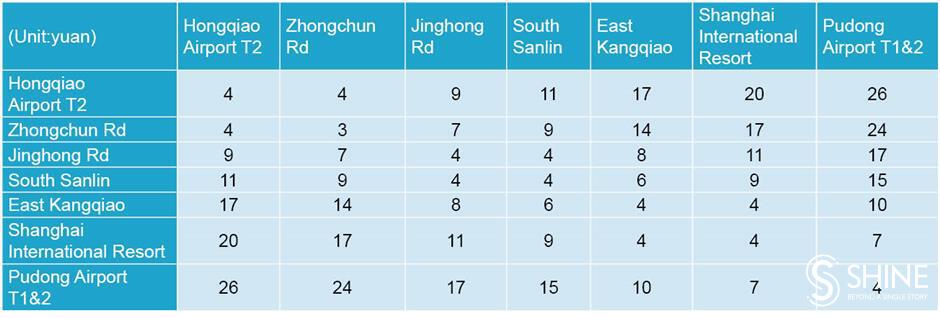 Travel between Shanghai Hongqiao International Airport and Pudong International Airport by the Airport Link Line of Shanghai Suburban Railway will cost up to 26 yuan (US$3.56), the railway operator, Shanghai Shentong Metro Group, said on Saturday.