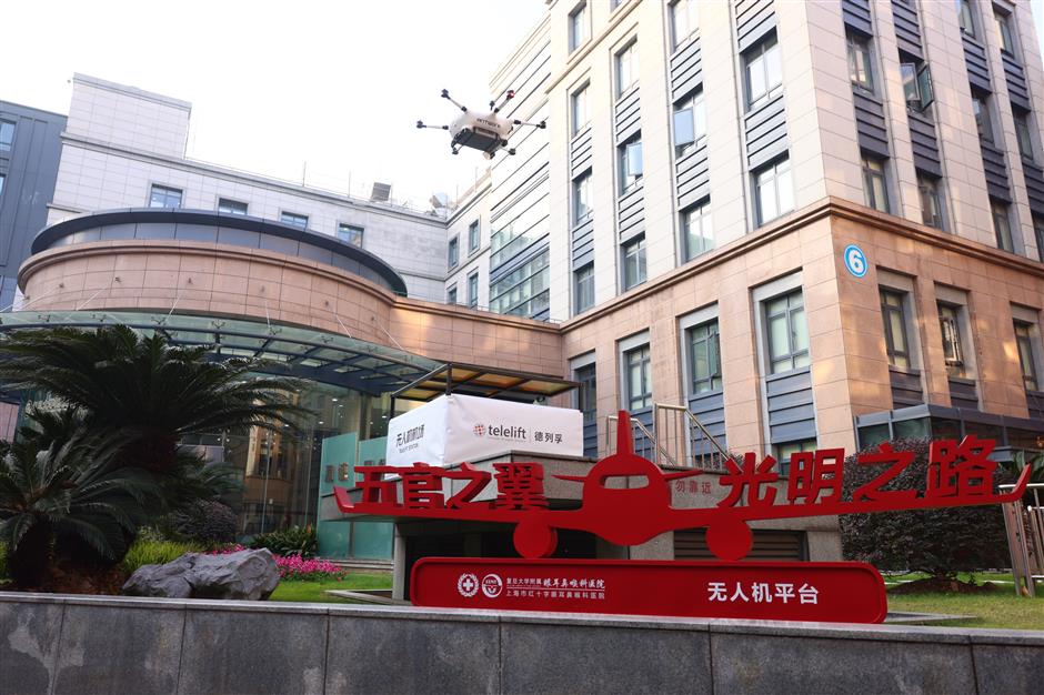 To better support grassroots medical care, China's first drone delivery route between a top-tier public hospital and community health centers successfully completed its inaugural flight in Shanghai last Thursday.