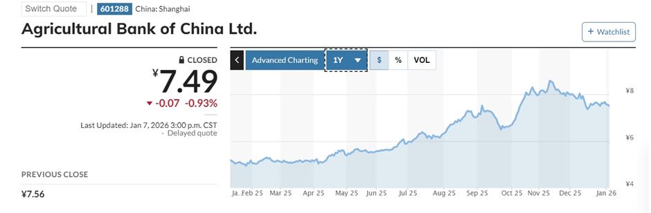 Agricultural Bank of China (stock ticker: 601288.SS)