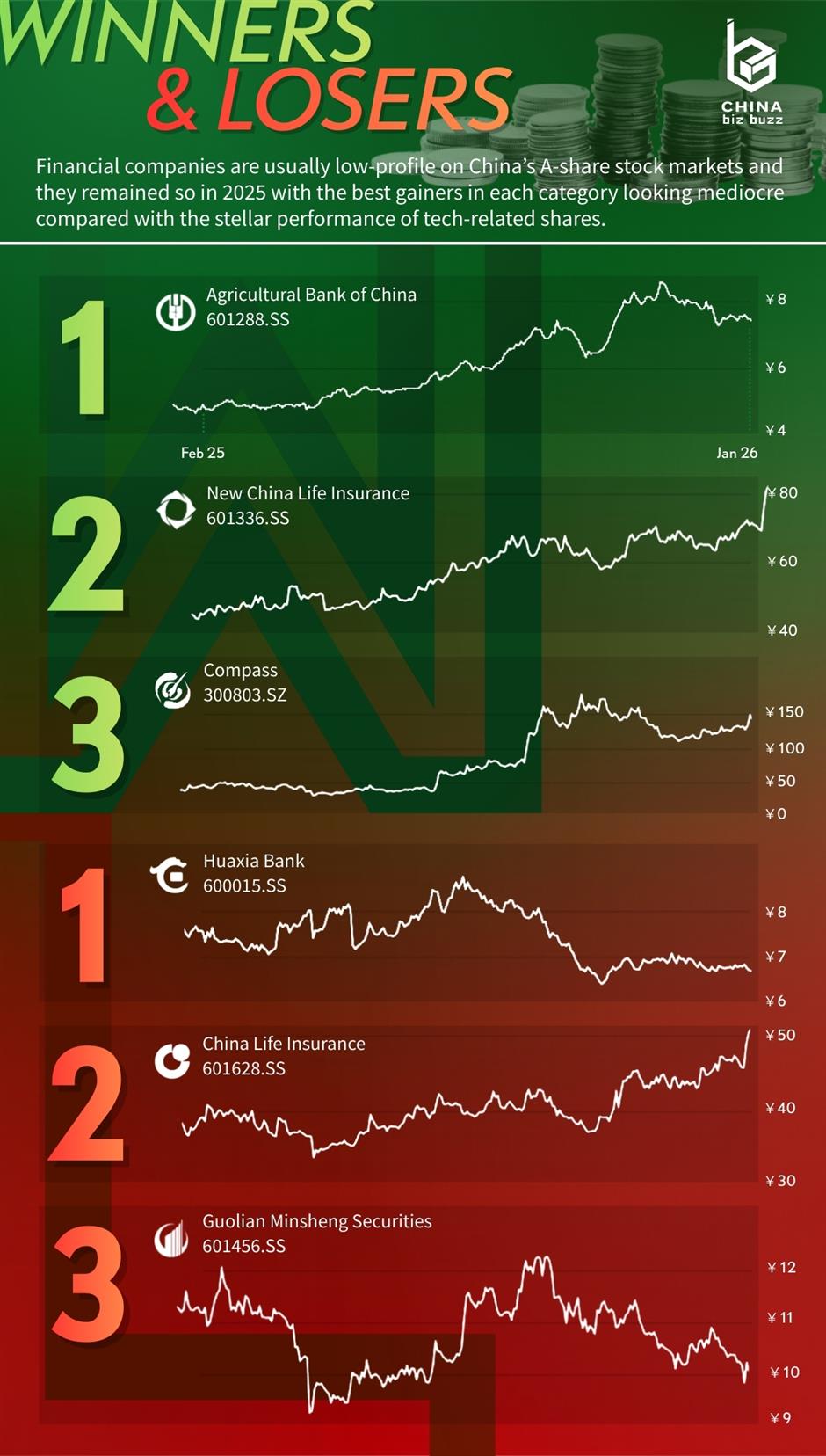 Shenzhen-listed Beijing Compass Technology Development Co Ltd was the best performing financial services firm in 2025, with an 89 percent surge in its share price.